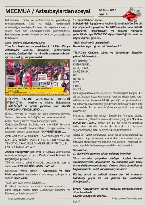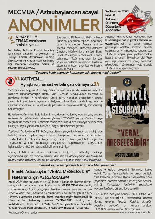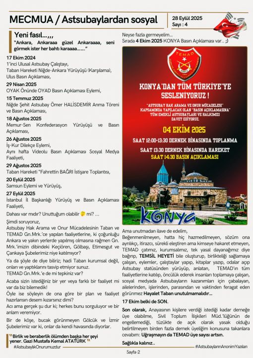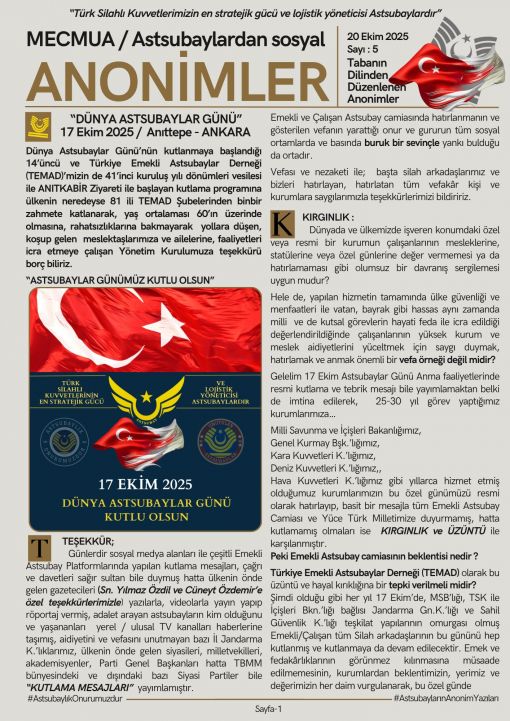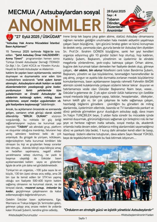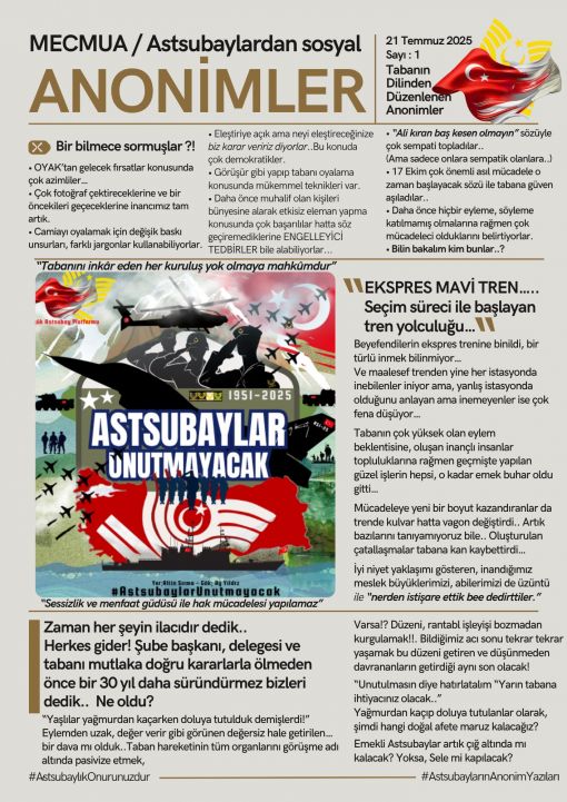 MECMUA/Astsubaylardan Sosyal Anonimler ![]() Sayı:1 Tarih: 21 Temmuz 2025 MECMUA'yı yayıma hazırlayan: Yıldırım ÖZEL https://x.com/ZARGANA72 Ayda bir yayımlanır. ![]() MECMUA/Astsubaylardan Sosyal Anonimler Sayı: 2 Tarih: 26 Temmuz 2025 ![]() MECMUA/Astsubaylardan Sosyal Anonimler Sayı: 3 Tarih: 01 Ağustos 2025 ![]() MECMUA/Astsubaylardan Sosyal Anonimler Sayı: 4 Tarih: 28 Eylül 2025 ![]() ![]() MECMUA/Astsubaylardan Sosyal Anonimler Sayı: 5 Tarih: 20 EKİM 2025 ![]() ![]() |