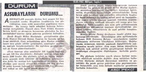 Abdi İPEKÇİ: ASSUBAYLARIN DURUMU... 18.05.1967 ![]() Abdi İPEKÇİ: ASSUBAYLARIN DURUMU... 18.05.1967 - Milliyet Assubaylar arasında öteden beri yaygın bir huzursuzluk vardır. Birçokları kendilerinin hor görüldüğüne, üvey evlat muamelesi yapıldığına inanmaktadır. Bu inancın haklı sebepleri bulunup bulunmadığı tartışılabilir. Önemli olanı Türk Silahlı Kuvvetlerinin birlik ve ahenginin korunması yönünden bu huzursuzluğun üzerine eğilip giderme çarelerini bulmaktır. Şimdi Büyük Millet Meclisinde görüşülmekte olan Ordu Hizmet Ödeneği Kanun Tasarısı bu hususta iyi bir fırsat olabilirdi. Oysa anlaşıldığına göre Meclise sunulan tasarı ters yönde etkiler yaratmakta, assubaylar arasında tepkiyle karşılanmaktadır. Bu tepkilere gerekçe olarak şu husus gösterilmektedir: Şimdi yurdun çeşitli köşelerinde görevde bulunan assubaylar bu gerekçe ile Büyük Millet Meclisi üyelerine, gazetelere başvurarak kapıldıkları üzüntüyü belirtmekte, duydukları huzursuzluğu anlatmaktadırlar. İnançlarına göre kendileri için öngörülen ödeneklerle bugünkü hayat pahalılığı karşısında askerî şeref ve haysiyetlerine uygun şekilde insanca yaşamak mümkün değildir. Ayrıca subaylara verilecek ödeneğin asli maaşa göre hesaplandığı halde kendileri için aynı yolda gidilememesinin eşitsizliği ve adaletsizliği üzerinde durmaktadırlar. Arzuları assubay ödeneklerinin de aynı şekilde hesaplanmasından ibarettir. Mesele Adalet Partisi Grubunun önceki günkü toplantısında getirilmiştir. Öğrenildiğine göre açıklamalarda bulunan Milli Savunma Bakanı “assubayların mağdur edilmesinin sözkonusu olmadığını” bildirmiştir. Mağduriyetin önlenmesi, tasarıda yapılacak değişikliklerle sağlanacaksa mesele yoktur. Ama Sayın Bakan ödeneklerin yukarıda izah edildiği şekilde gerçekleşmesi halinde bir mağduriyet olmayacağını düşünüyorsa herhalde yanılıyor. Hiç şüphesiz imkânlar sınırlı olunca herkesi memnun edebilmek mümkün değildir. Ama imkânları kullanırken ölçülerde dikkatli davranmak mümkün ve gereklidir. Bu gerek yerine getirilirse yine gayrimemnunlar bulunabilir, ama kitle halinde mağdurlar yaratılması herhalde önlenebilir. İlgili Makale: |