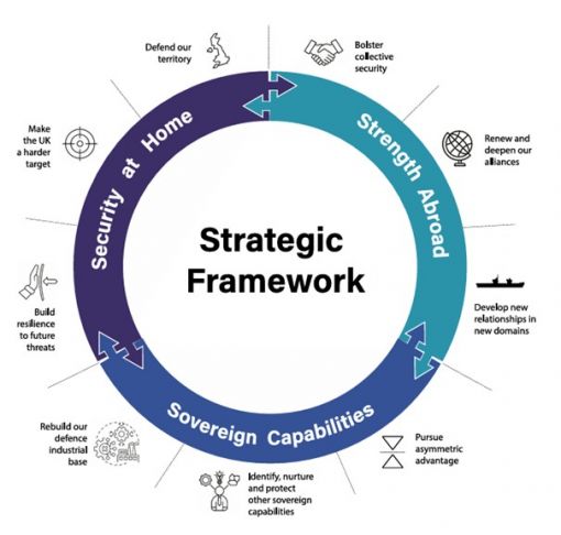 (Stratejik Çerçeve diyagramı) s. 19 Stratejik Çerçeve (Strategic Framework) Bu Çerçeve, Birleşik Krallık’ın önceki bölümde belirtilen bağlama yanıt verirken rehberlik edecek temel ilkeleri ortaya koymaktadır. Üç Temel Direk birbirini karşılıklı olarak güçlendirir. Yurt içindeki güvenlik, yurtdışında güç gösterebilmek ve eşsiz ulusal avantajlarımızı geliştirebilmek için gerekli temeli sağlar. Yurtdışında başkalarıyla iş birliği yapmak, insanları koruma ve ekonomimizi büyütme yeteneğimiz için esastır. Egemen yetenekleri geliştirmek, bizi yurt içinde güvende tutar, ekonomik verimliliğimizi artırır ve uluslararası etkimizi güçlendirir. Direk (i) - YURTTA GÜVENLİK • Toprağımızı savun • İngiltere’yi daha zor bir hedef yap • Gelecekteki tehditlere karşı dayanıklılık oluştur Direk (ii) - YURTDIŞINDA GÜÇ • Kolektif güvenliği güçlendirin • Önemli ittifakları yenileyin ve tazeleyin • Yeni alanlarda yeni ortaklıklar geliştirin Direk (iii) - EGEMEN VE ASİMETRİK YETENEKLERİ ARTIRIN • Savunma sanayi temelimizi yeniden inşa edin • Diğer egemen yetenekleri belirleyin, geliştirin ve koruyun • Asimetrik avantaj peşinde olun s. 20 Direk (i) – Yurtta Güvenlik