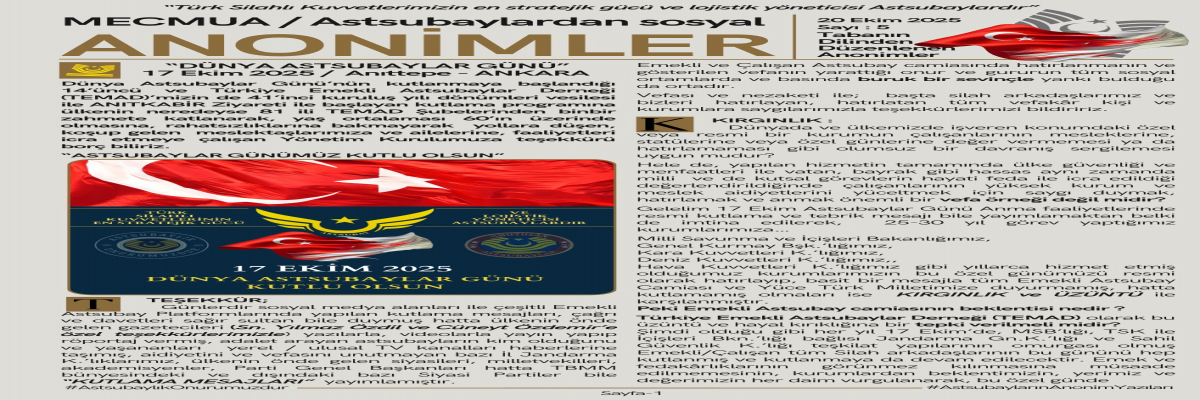 • MECMUA/Astsubaylardan Sosyal Anonimler Sayı: 5 Tarih: 20 EKİM 2025