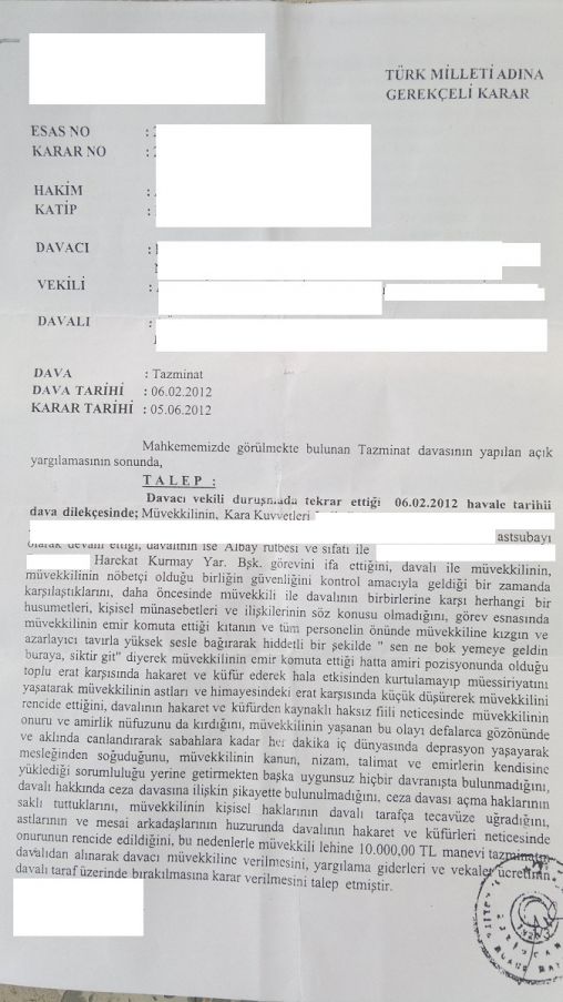 eden albayın Asliye Hukuk Mahkemesi kararıyla tazminata mahkûm edildiği haberi http://www.askerihukuk.com sitesinde yer