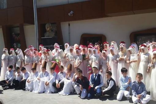 Fotoğraflarda görüldüğü üzere, erkek çocuklarına hacca giderken kullanılan ihram giydirildi, bazı çocuklara ise takke takıldı, ellerine de tespih verildi. Kız çocuklarına ise türban takıldı. Okul yönetimi ayrıca bu kıyafetlerle çocuklara toplu olarak fotoğraf çektirdi. Etkinliğe öğrencilerin gönüllü dahil olduğu ancak bütün öğrencilerin etkinliği izlemeye zorunlu tutulduğu öğrenildi.